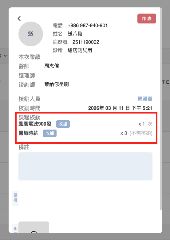 櫃檯或助理在核銷主要療程時，可同步計入醫師的服務時數。