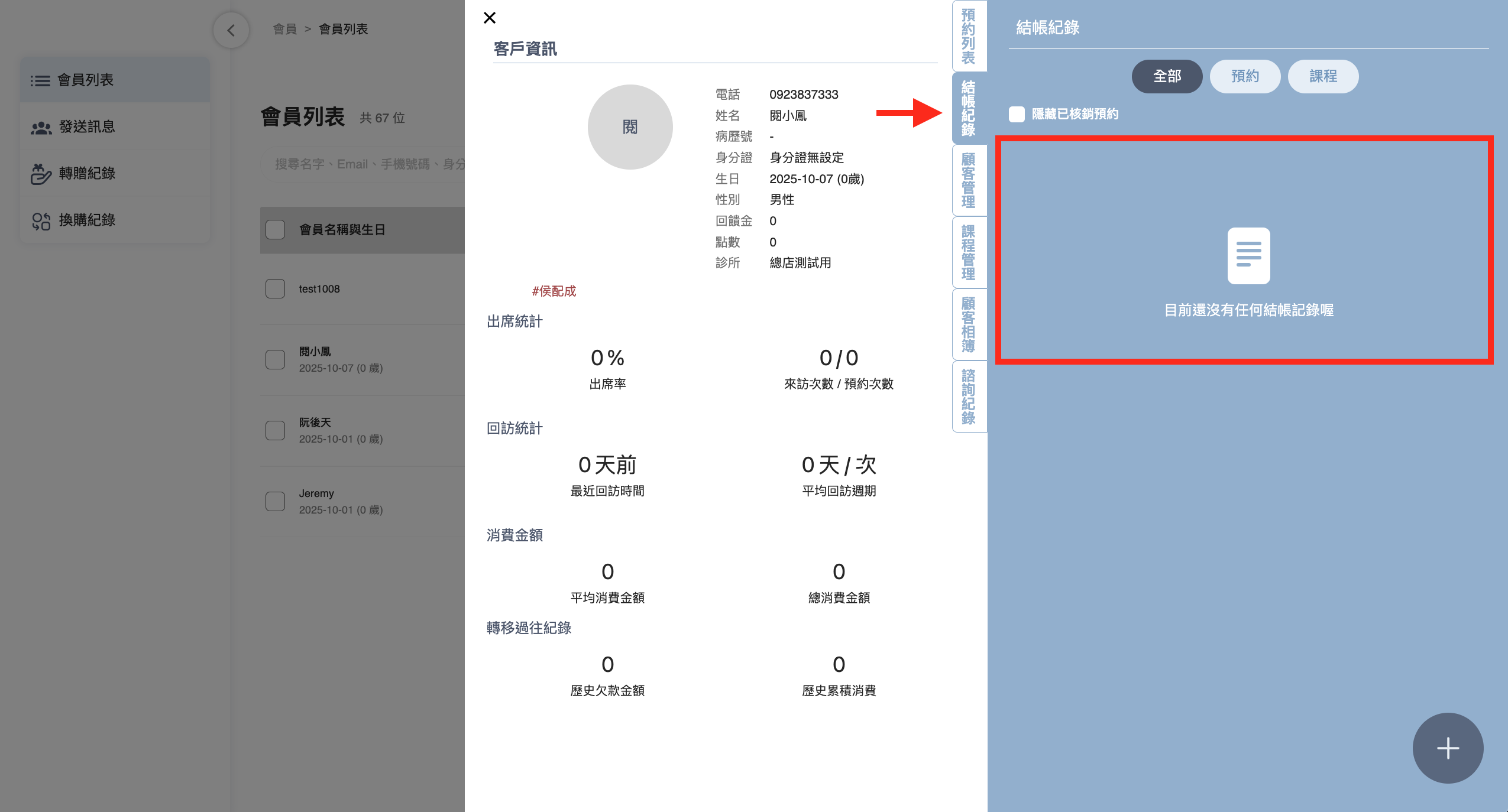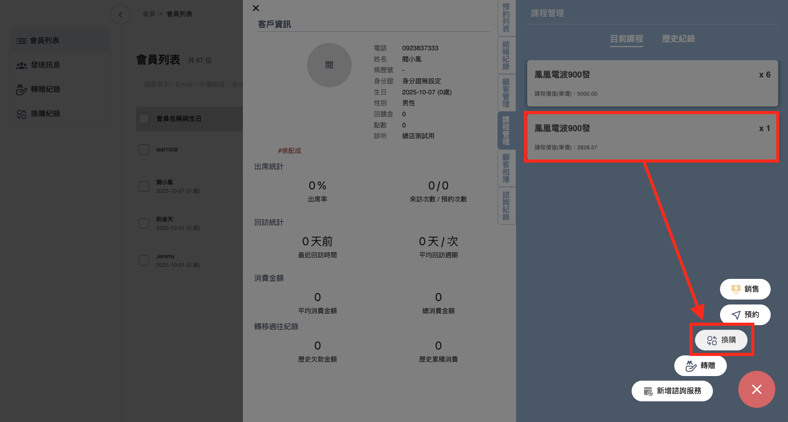 * 進入該會員的\*\*「課程管理」\*\*頁面。