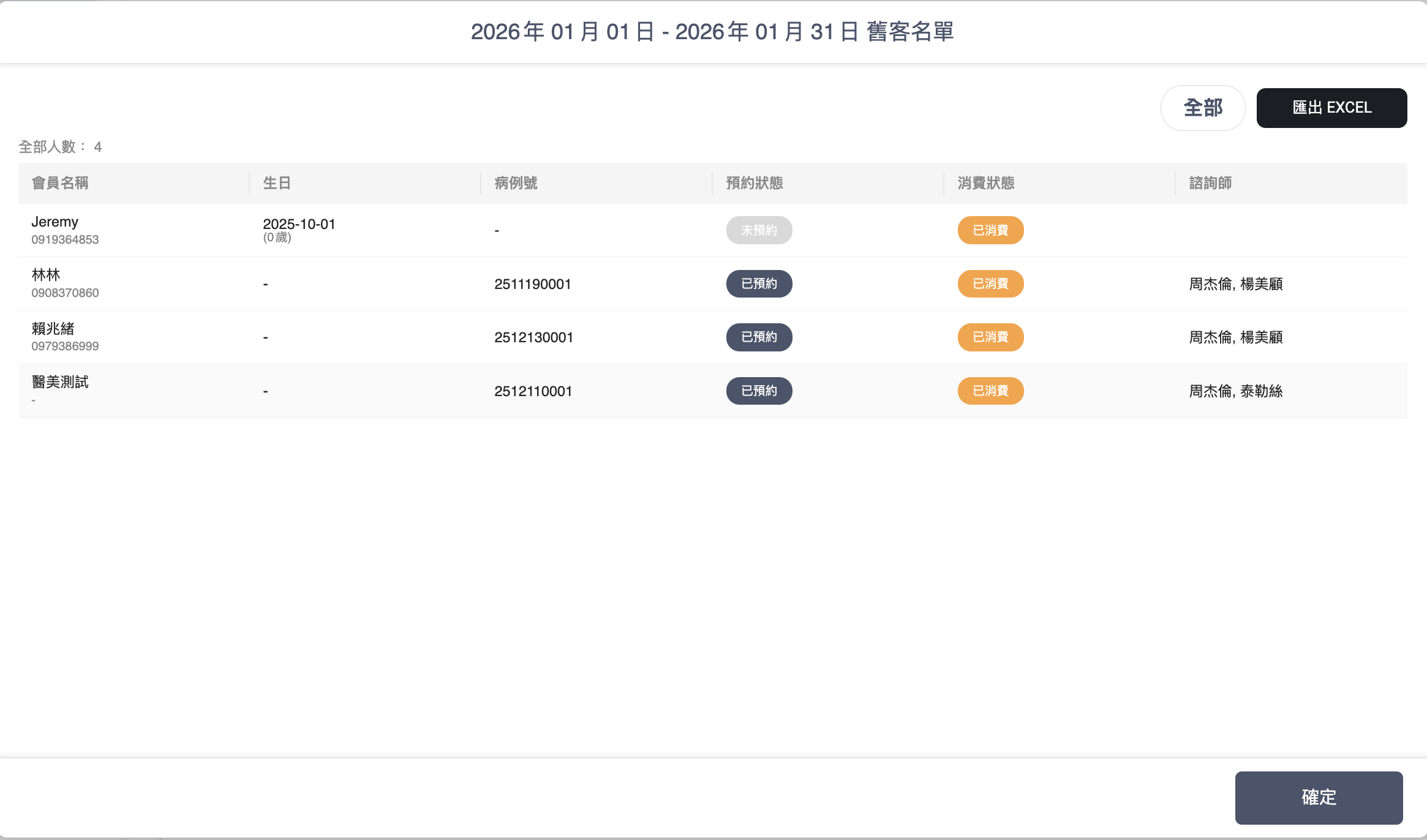 * 匯出名單：如需進行後續電訪或 LINE 關懷，可點選右上角 「匯出 Excel」 進行離線管理。