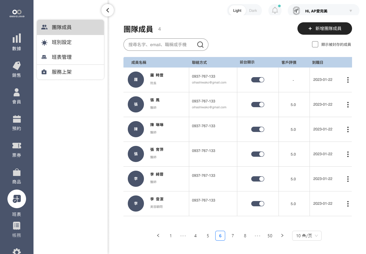 3. 在新增頁面中，填寫成員的詳細資料，包括：姓名、手機號碼、到職/離職日、職稱等。