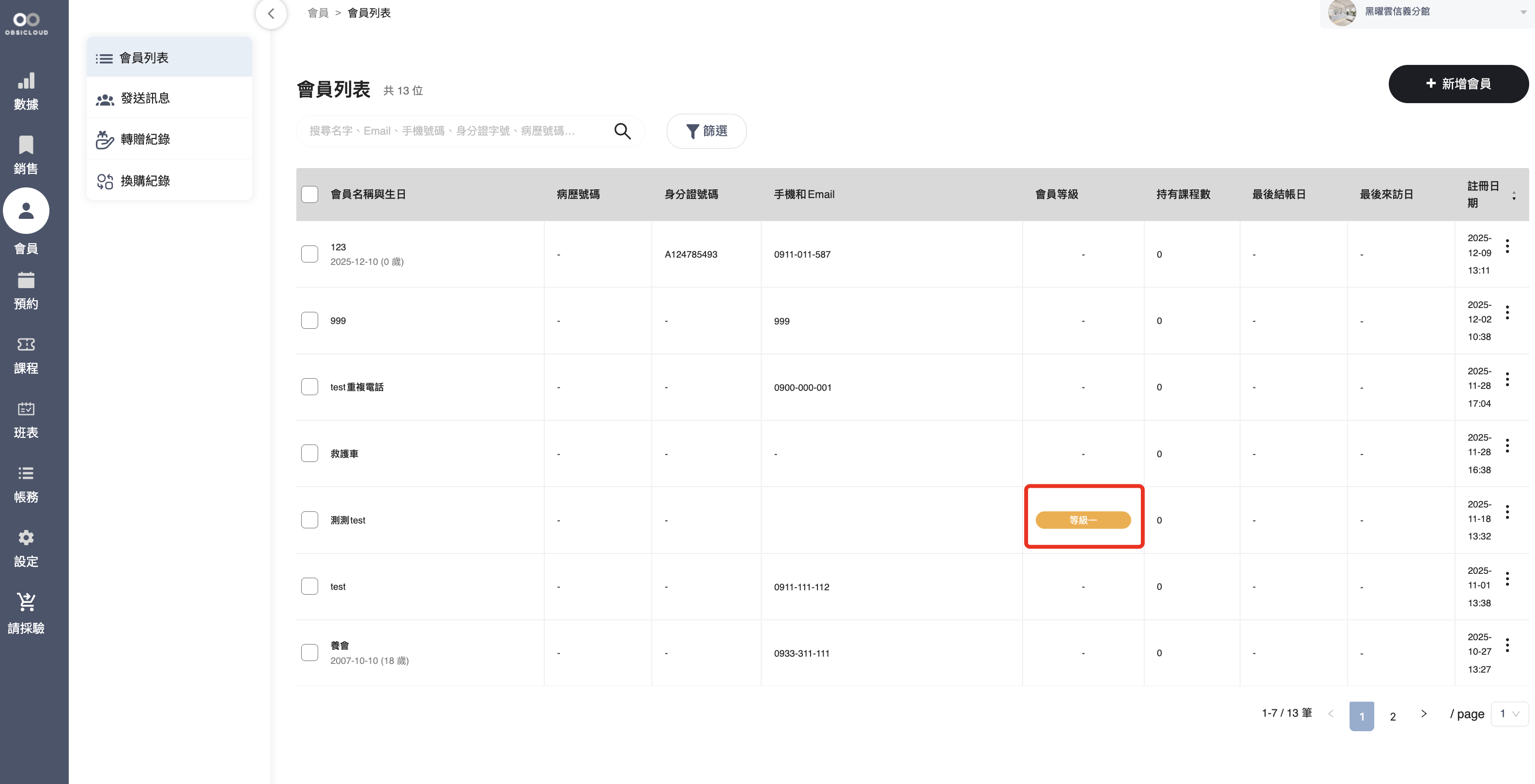 * 列表檢視：設定完成後，會員等級標籤將直接顯示於會員列表中，方便人員快速識別。