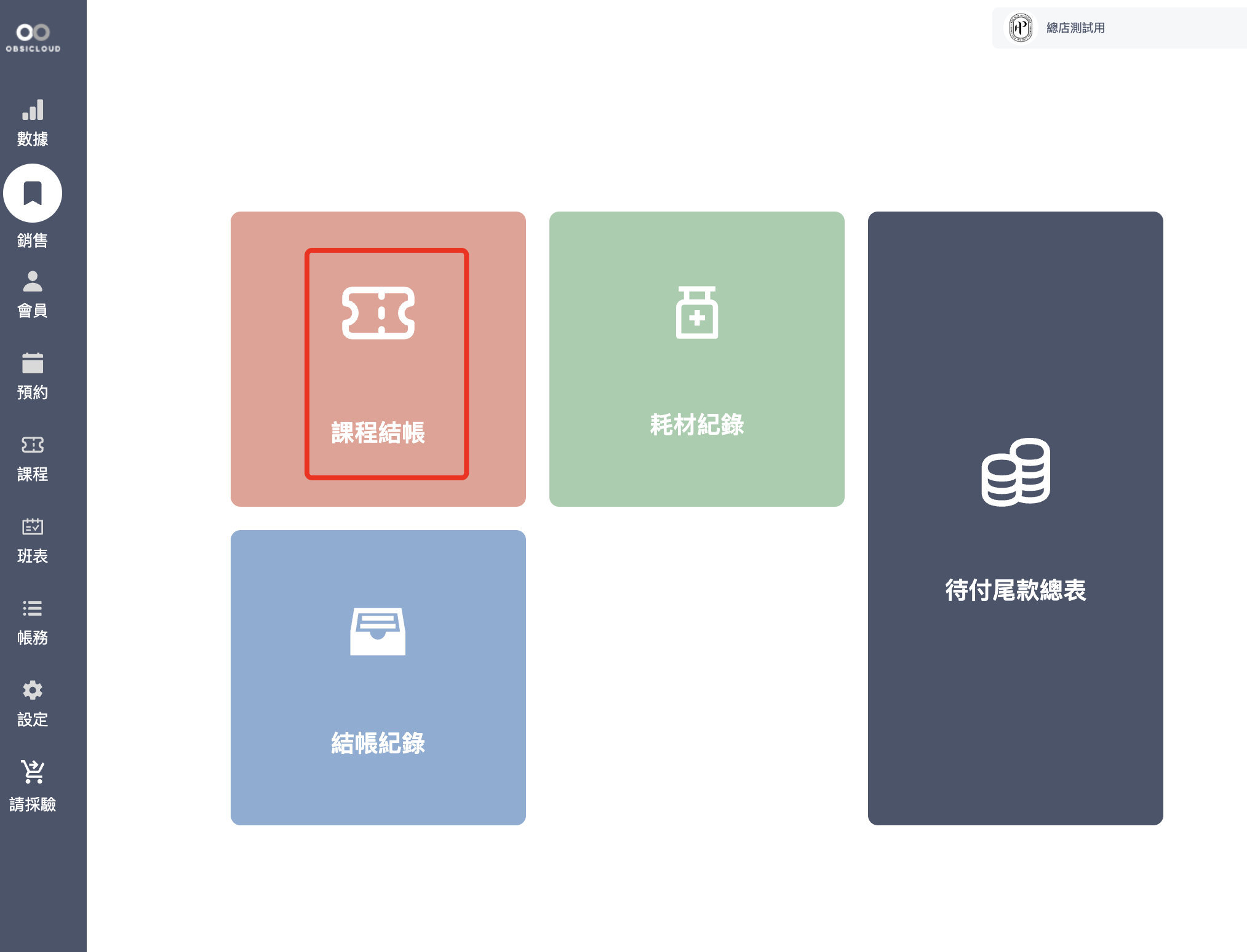 1. 進入銷售介面：導覽至 「銷售」 > 「課程結帳」。