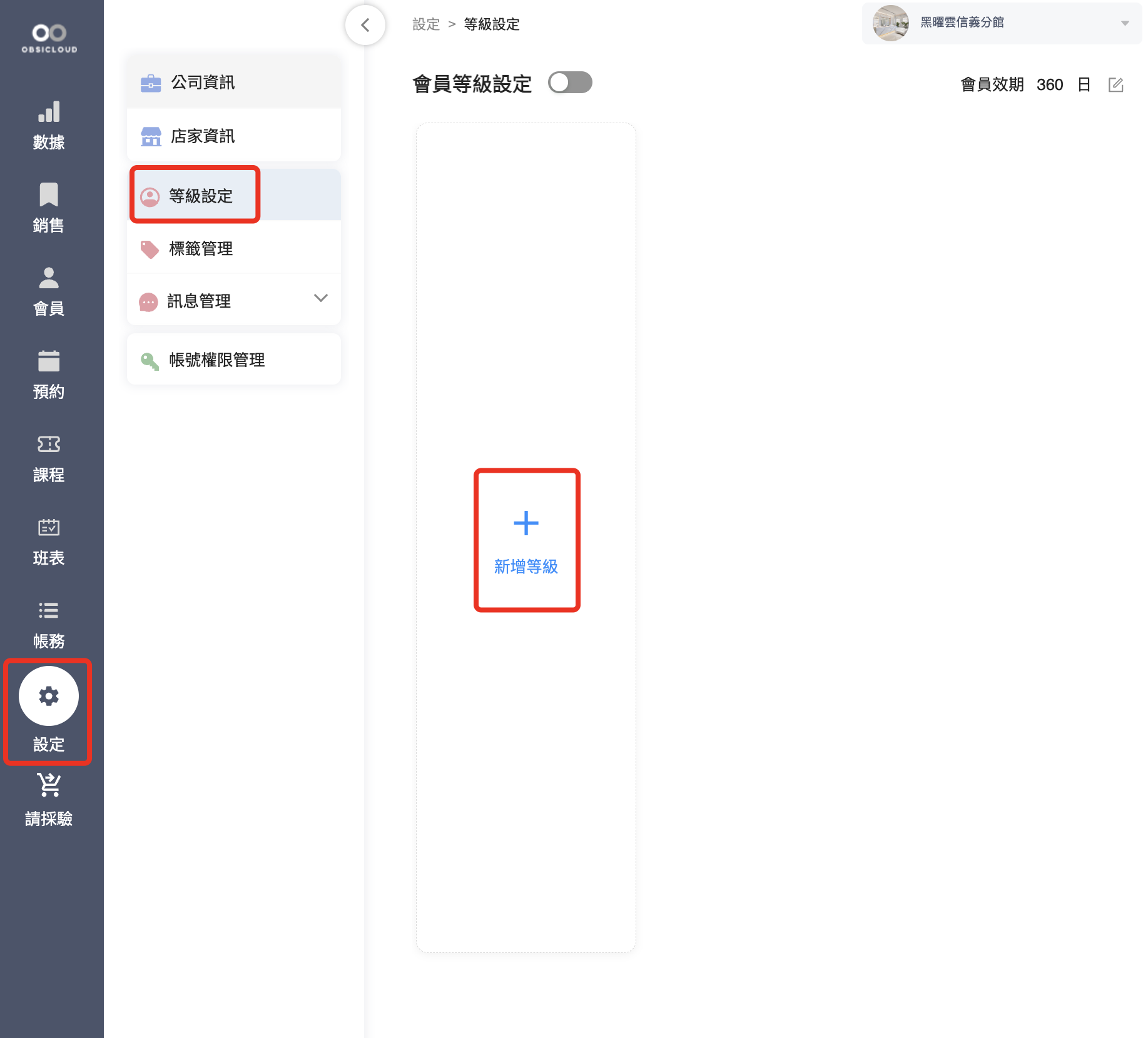 1. 進入設定頁面：導覽至 「設定」 > 「等級設定」，點擊 「新增等級」。